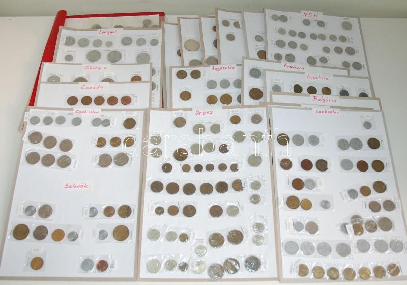 Vegyes világpénz gyűjtemény országonként külön kartonra rendezve, közt...