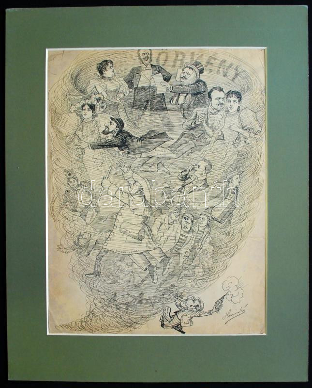 Leírás: Homicskó Atanáz (1864-1916): Tüntesd magadat, tus, papír, jelzett, új paszpartuban, (kis szakadással) 38×29 cm