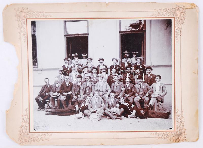 Leírás: cca 1896 Erzsébetfalva (Pestszenterzsébet) község notabilitásai ünnepség rendezőjeként. Tablófotó, kartonra kasírozva, 36x26cm (karton sérült)