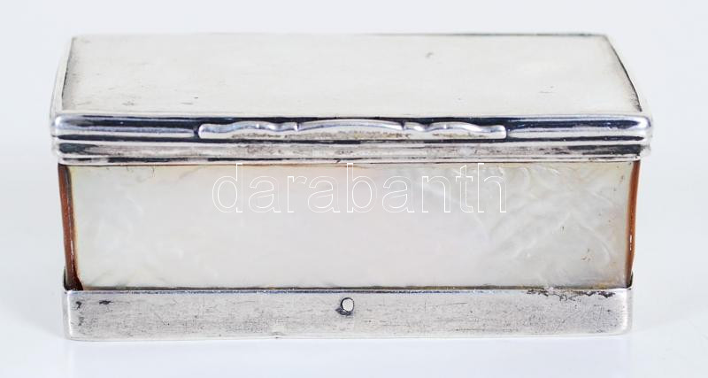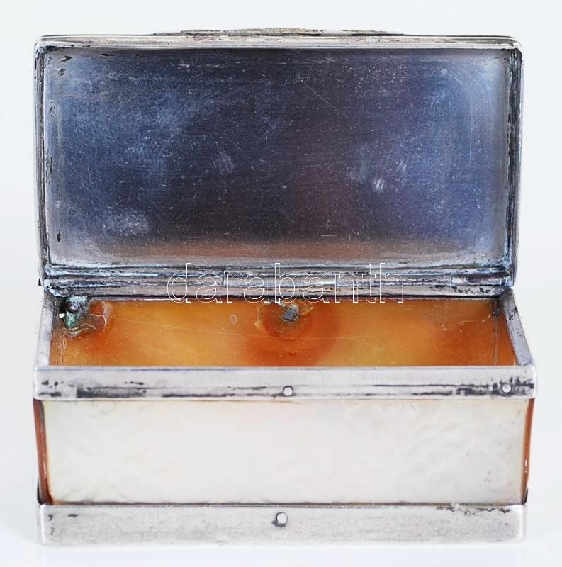 cca 1900 Gyöngyház dobozka ezüst (Ag) foglalatban, ezüst fedéllel /