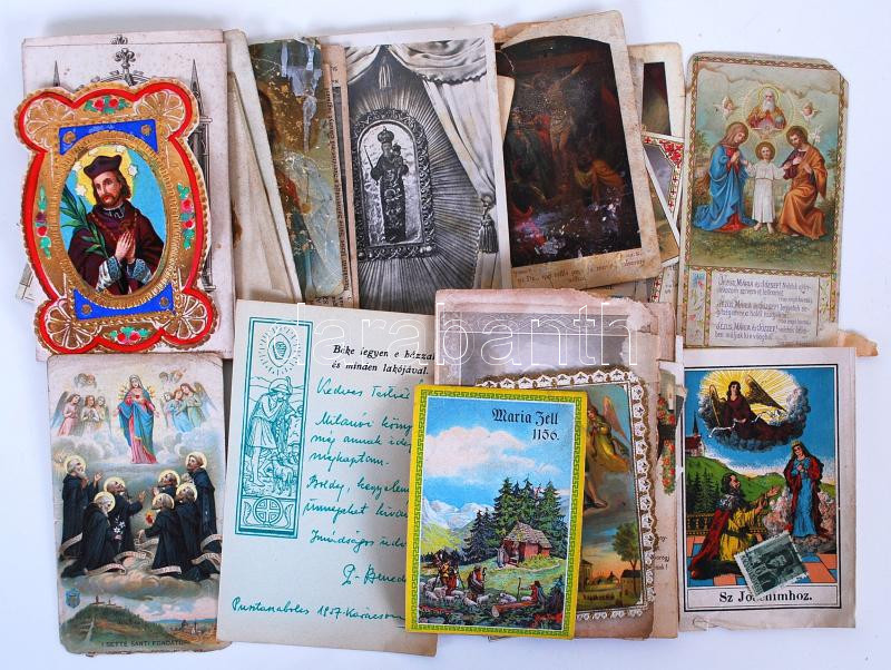 Leírás: 41 db szentkép lithokkal, érdekesebb darabokkal