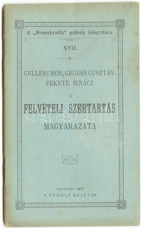 Gelléri Mór - Gegus Gusztáv - Fekete Ignácz: A felvételi szertartás magyarázata. (A "Demokratia" páholy könyvtára XVII.) Bp., 1895, A Páholy Sajátja, 31p.