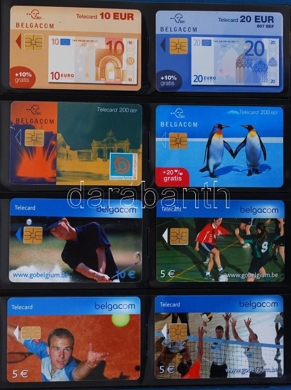 200 darabos nagyon szép belga telefonkártya-gyűjtemény. Mind különféle! Igényes gyűrűs Lindner telefonkártya-berakóban / All different 200 Belgian phonecards in quality Lindner album