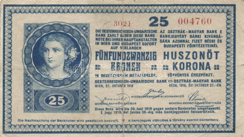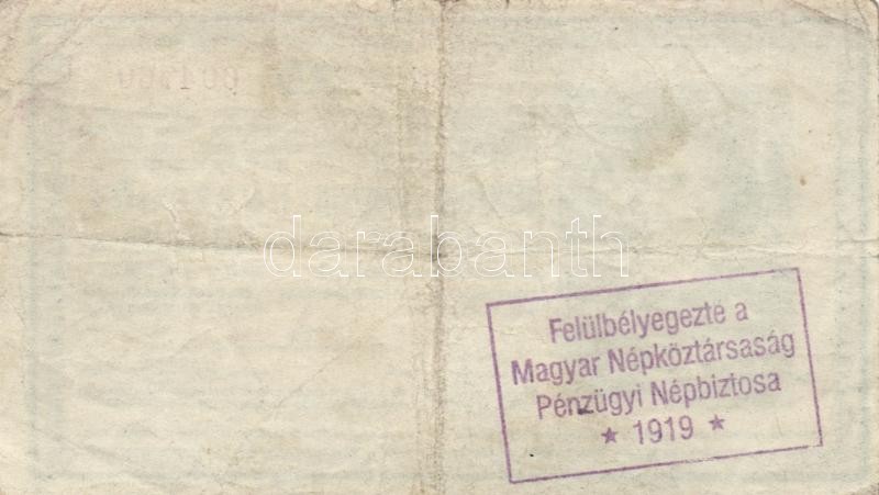 Leírás: 1918. 25K "3021" sima hátlapon "Felülbélyegezte a Magyar Népköztársaság Pénzügyi Népbiztosa 1919" bélyegzéssel T:III