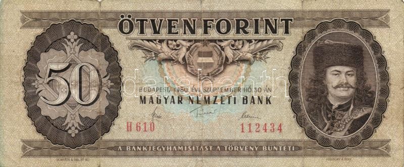 1962. 20Ft + 1980. 50Ft "H" T:III https://www.darabanth.com/hu/173-Gyorsarveres/173.0/Numizmatika/Magyar-es-magyar-vonatkozasu-bankjegyek~4000126/1962-20Ft-plus-1980-50Ft-H-TIII~II589055