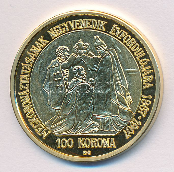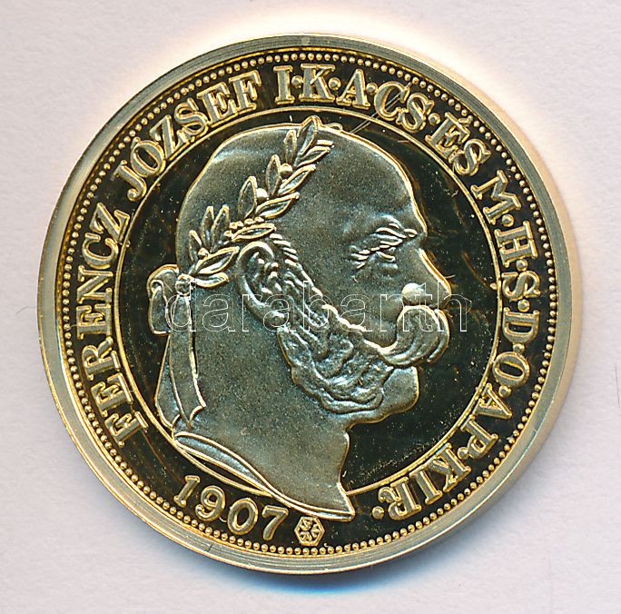 Leírás: "Magyar aranypénzek utánveretben - Ferenc József jubileumi 100 korona" aranyozott Ag(0.999) emlékérem (5.5g) T:PP csak 2009db!