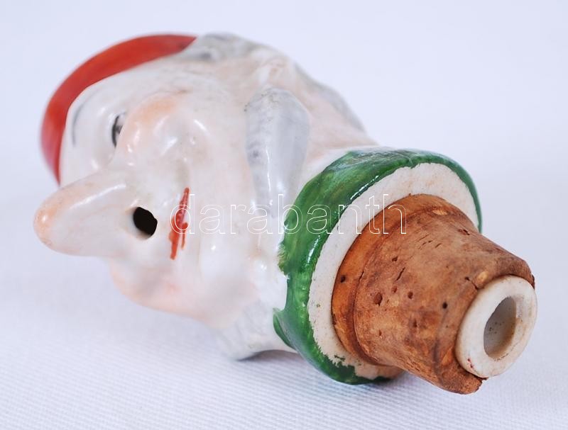 Leírás: Humoros férfi fejet formáló, kézzel festett porcelán dugó /