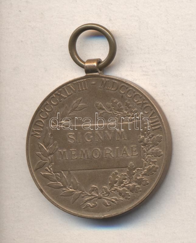 1898. "Jubileumi Emlékérem Fegyveres Erő Számára / Signum memoriae (AVSTR)" Br érem mellszalag nélkül T:1-,2