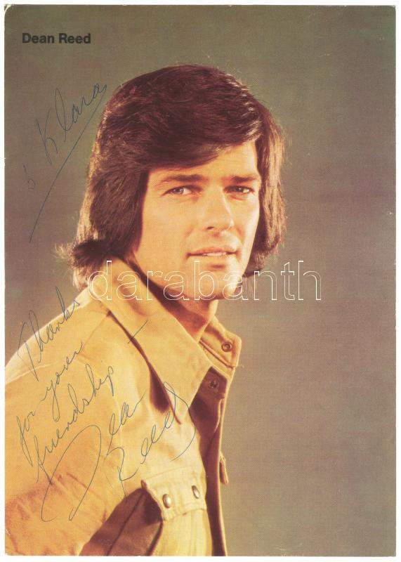 Dean Reed (DDR) dedikált fotója, 21×15 cm https://www.darabanth.com/hu/175-Gyorsarveres/175.0/Festmeny-mutargy-papirregiseg-egyeb/Alairas~1000020/Dean-Reed-DDR-dedikalt-fotoja-21C39715-cm~II602473