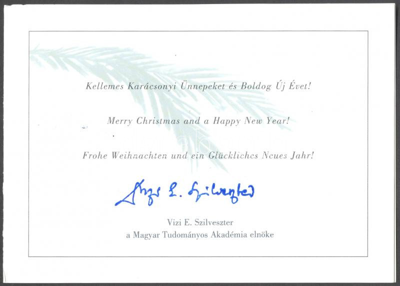 Leírás: cca 2000 Vizi E Szilveszter MTA elnök aláírt üdvözlőlap