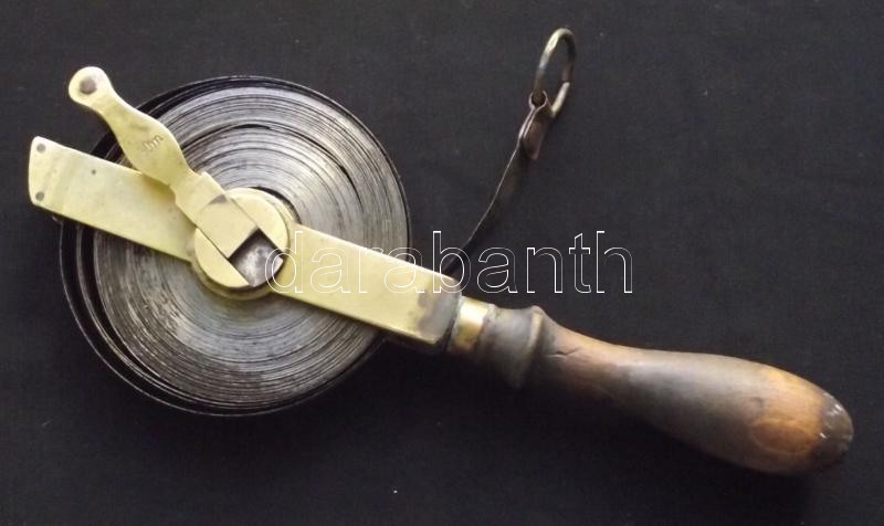 Régi típusú nyeles mérőszalag 30m https://www.darabanth.com/hu/175-Gyorsarveres/175.0/Festmeny-mutargy-papirregiseg-egyeb/Bolhapiac~1000015/Regi-tipusu-nyeles-meroszalag-30m~II524979