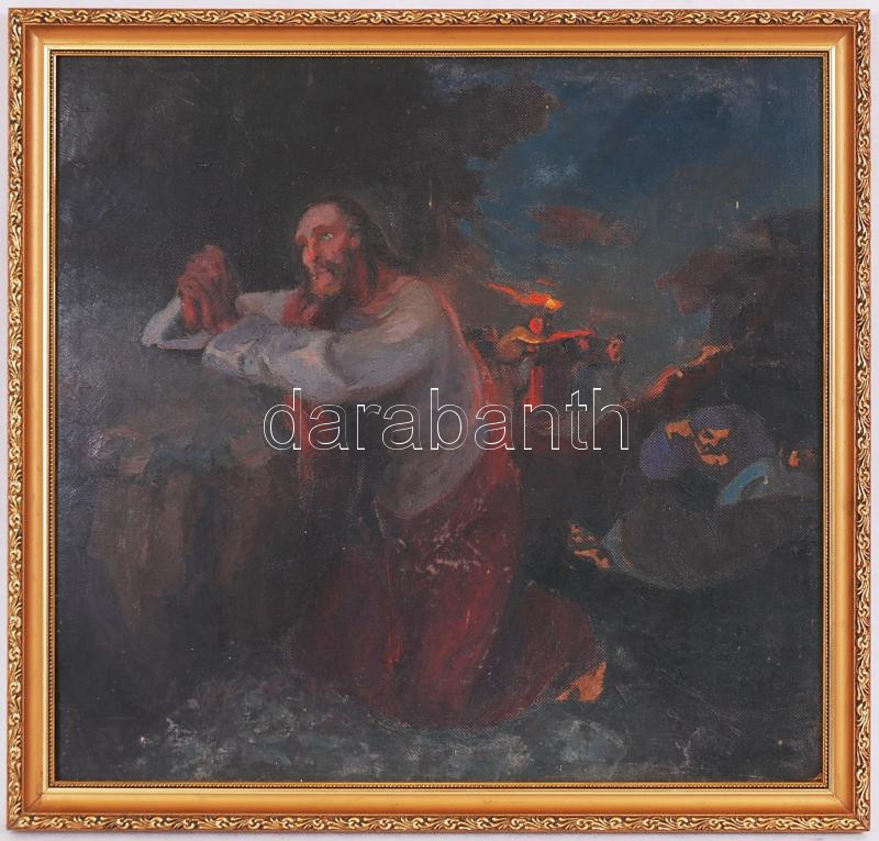 Leírás: Jelzés nélkül: Krisztus az Olajfák hegyén. Olaj, farost, apró hibákkal, 50×48 cm