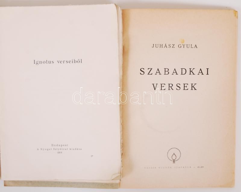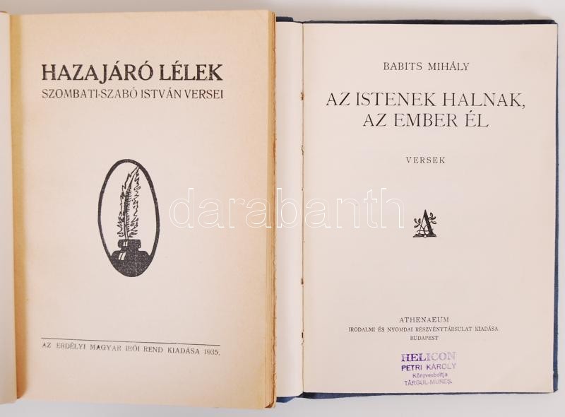 5db háború előtti nyugatos verseskötet: Ady Endre, A Sion-hegy alatt; Babits Mihály, Az istenek halnak az ember él; Juhász Gyula, Szabadkai versek etc.
