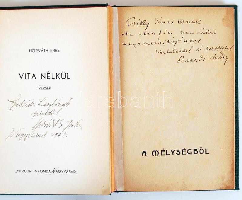 7db első kiadású, dedikált verseskötet: Demeter Dénes, Horváth Imre, T... https://www.darabanth.com/hu/175-Gyorsarveres/175.0/Festmeny-mutargy-papirregiseg-egyeb/Konyvek-Egyeb-ritkasagok~1000042/7db-elso-kiadasu-dedikalt-verseskotet-Demeter-Denes-Horvath-Imre-Tamas-Tihamer-Hollo-~II603983