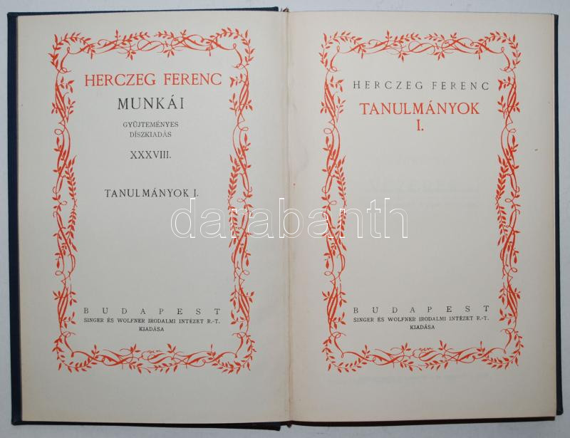 Herczeg Ferenc: Tanulmányok I-II. (Herczeg Ferenc Munkái Gyűjteményes ... https://www.darabanth.com/hu/175-Gyorsarveres/175.0/Festmeny-mutargy-papirregiseg-egyeb/Konyvek-Egyeb-ritkasagok~1000042/Herczeg-Ferenc-Tanulmanyok-I-II-Herczeg-Ferenc-Munkai-Gyujtemenyes-Diszkiadas-XXXVIII-XXXIX~II581382