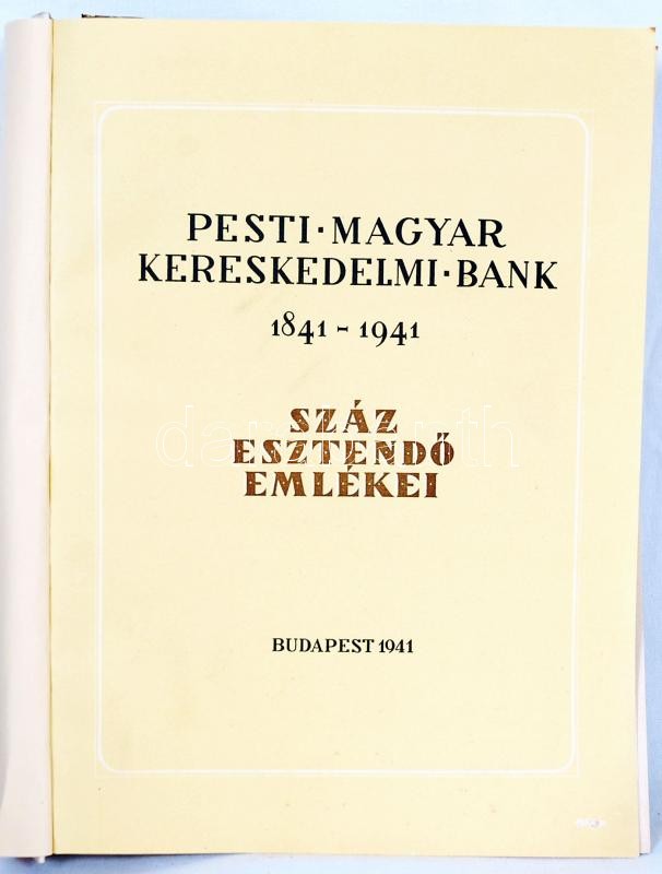 Pesti Magyar Kereskedelmi Bank 1841-1941 - Száz esztendő emlékei. Bp., 1941, Pesti Magyar Kereskedelmi Bank. Számos képpel illusztrálva, fiókhálózati térképekkel