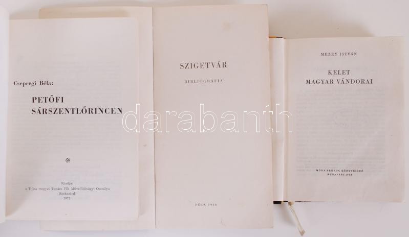 Leírás: Mezey István: Kelet Magyar Vándorai. Bp., 1963. + Petőfi Sárszentlőrincen. Szigetvár Bibliográfiája