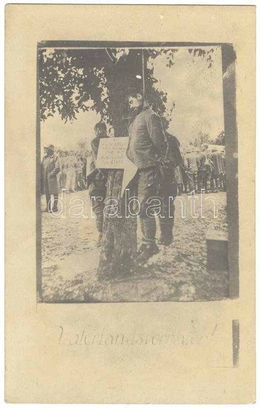 cca 1916 Olasz font: kémkedésért felakasztott katonatisztek fotólap. Hátoldalt a készítő feljegyzéseivel / Italian front: officers hung for spying photo 14x9 cm