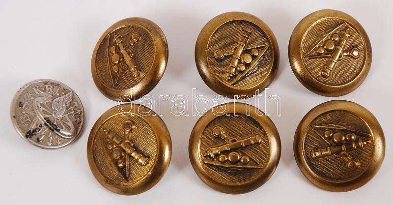 cca 1930 M. kir. tüzérségi rézgombok, és egy "Beszkárt" (Budapest Szék... https://www.darabanth.com/hu/175-Gyorsarveres/175.0/Festmeny-mutargy-papirregiseg-egyeb/Militaria~1000045/cca-1930-M-kir-tuzersegi-rezgombok-es-egy-Beszkart-Budapest-Szekesfovaros-Kozlekede~II602805