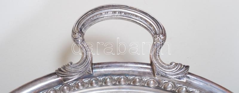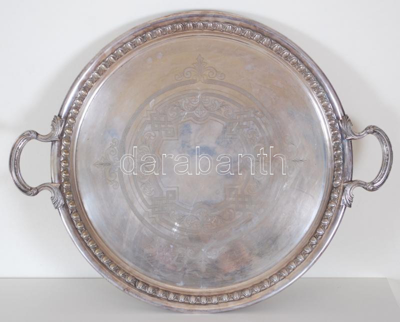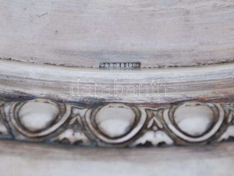 Leírás: 1900 GAB.NS svéd ezüstözött hatalmas füles tálca, jelzett, d:50 cm