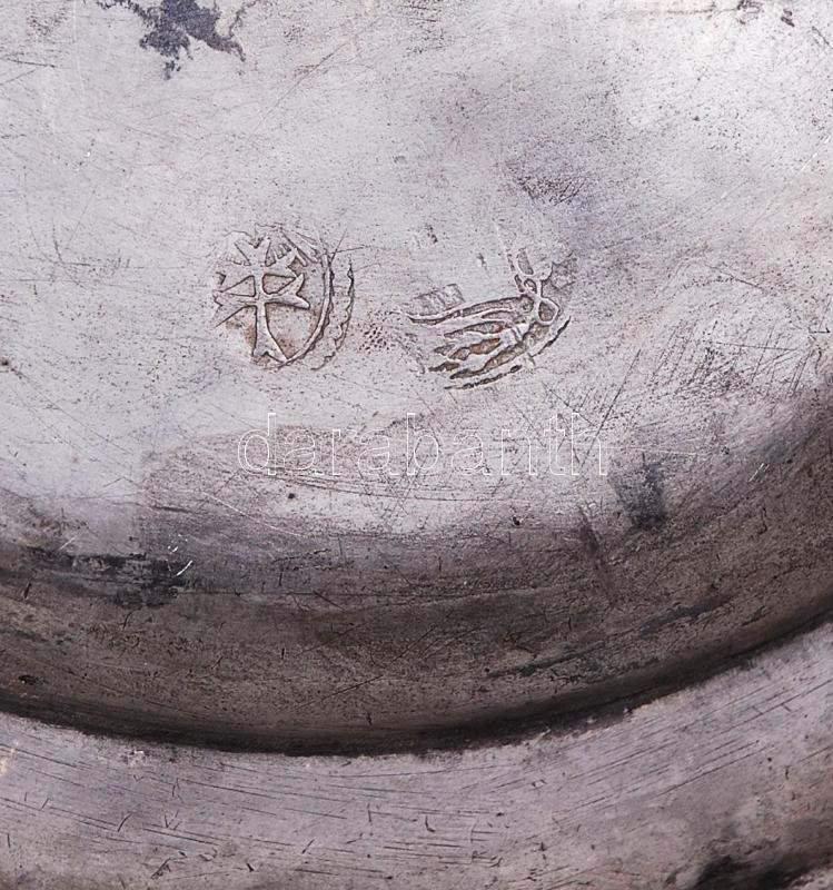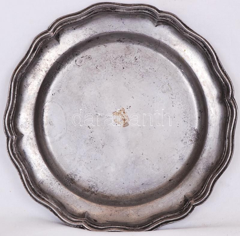 Leírás: XVIII-XIX. század Ón tányér, kettős kereszt jellel, elmosódott mesterjeggyel / Vintage tin plate with blurred master-sign