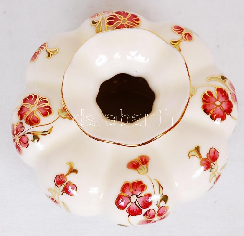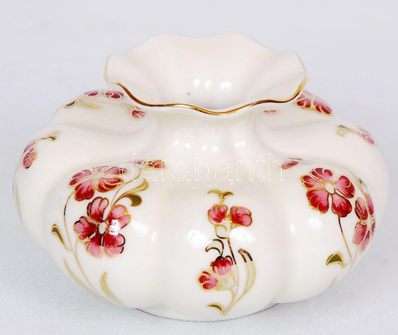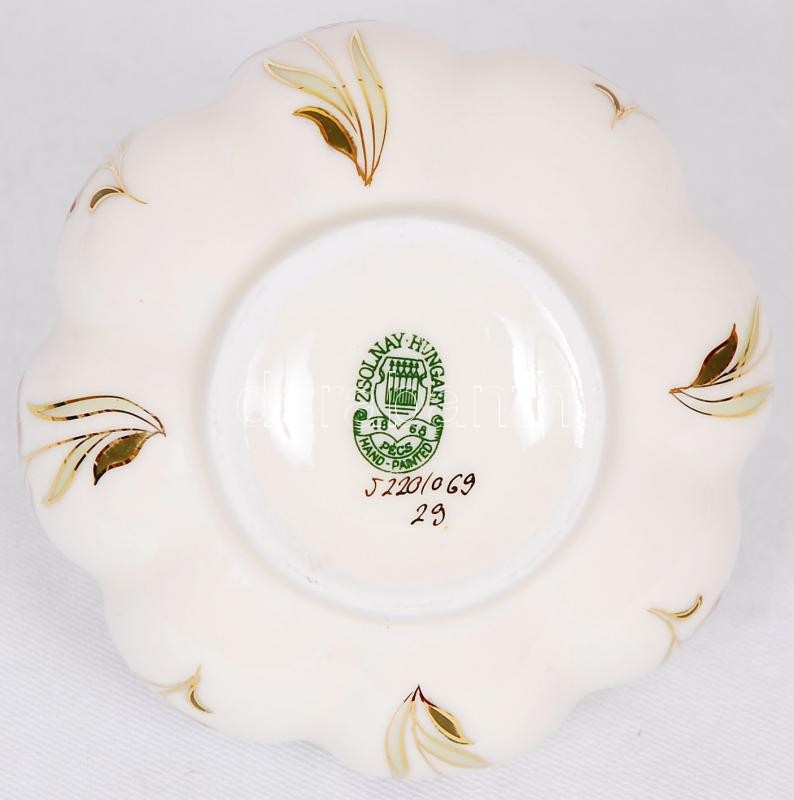 Leírás: Kézzel festett Zsolnay vázácska, jelzett, hibátlan / Hand painted Zsolnay vase d:12 cm, m:7 cm