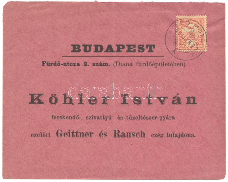 Leírás: 1901 Köhler tűzoltószer-gyár reklámboríték Felső-Motesicz-ből küldve