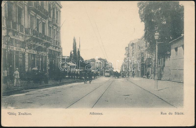 Athens Stadium street, tram (EK) https://www.darabanth.com/hu/175-Gyorsarveres/175.0/Kepeslapok/Gorogorszag~1200016/Athens-Stadium-street-tram-EK~II605386