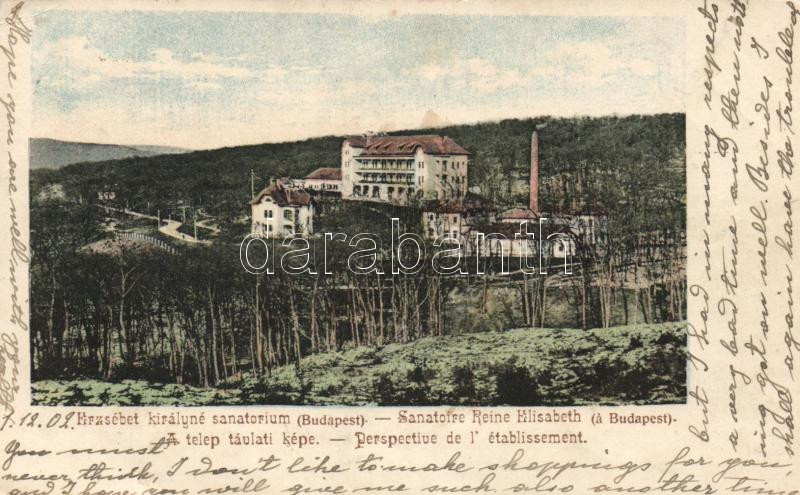 Budapest XII. Erzsébet királyné szanatórium (EK) https://www.darabanth.com/hu/175-Gyorsarveres/175.0/Kepeslapok/Magyarorszag~400237/Budapest-XII-Erzsebet-kiralyne-szanatorium-EK~II605318