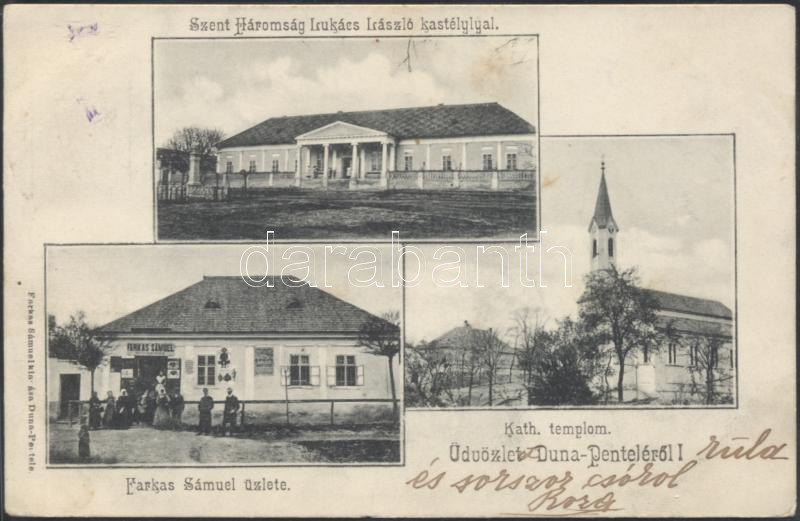 Dunapentele Farkas Sámuel üzlete, Szentháromság Lukács László kastély https://www.darabanth.com/hu/175-Gyorsarveres/175.0/Kepeslapok/Magyarorszag~400237/Dunapentele-Farkas-Samuel-uzlete-Szentharomsag-Lukacs-Laszlo-kastely~II607124