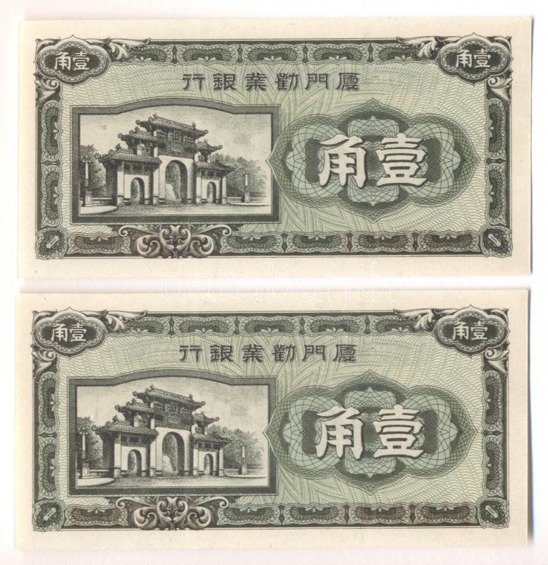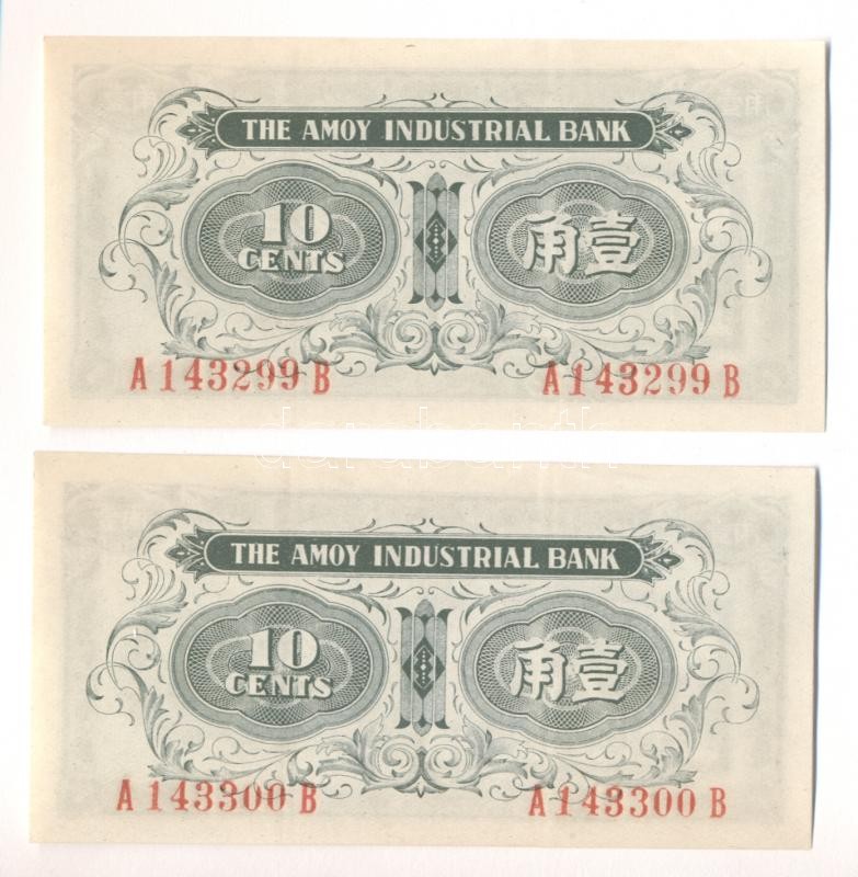 Kína/ Amoy Industrial Bank 1949. 10c (2x) egymás utáni sorszámmal T:I