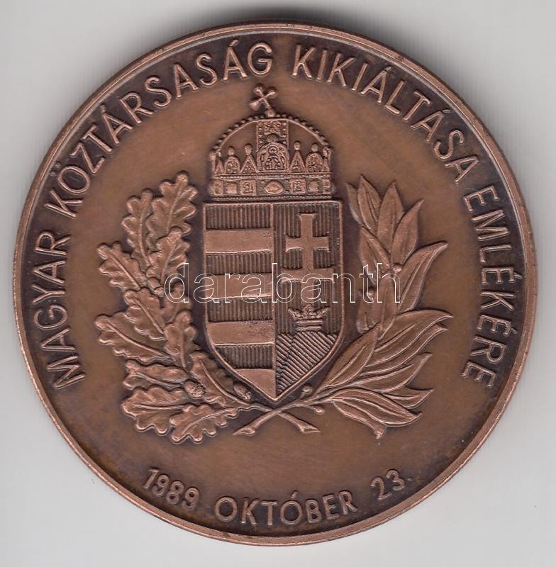 Leírás: Bajnok Béla (1937-) 1990. "Magyar Köztársaság kikiáltása emlékére" Br emlékérem (42,5mm) T:1