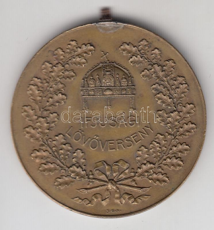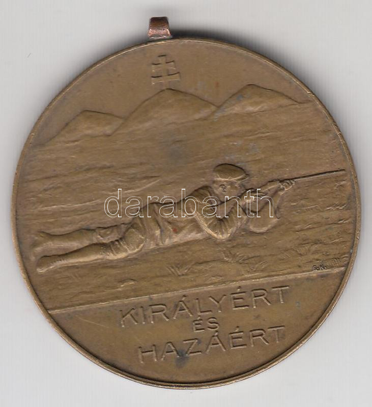 Leírás: Scheid G. A. (ezüstáru és éremgyár) ~1910. "Ifjúsági Lövőverseny/Királyért és Hazáért" Br sportérem (36mm) T:2