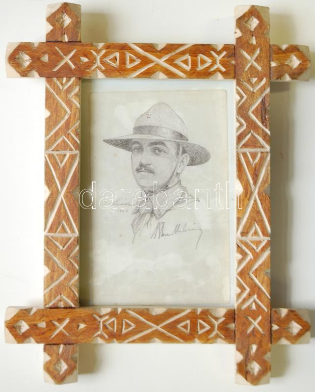 Leírás: Márton Lajos (1891-1953): Cserkész portré. Ceruza, papír, jelzett, szép keretben, 20×15 cm