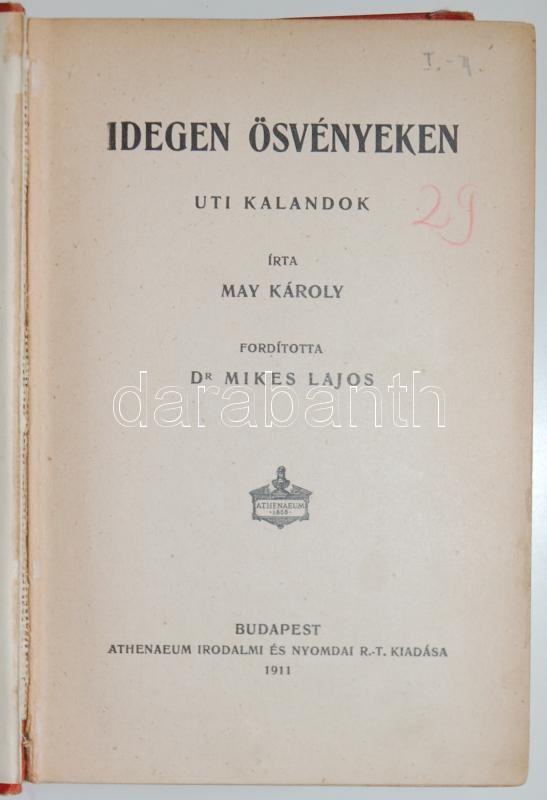 Leírás: May Károly: Idegen ösvényeken Budapest 1911. Athenaeum. Egész vászon kötésben, gerinc hibás.