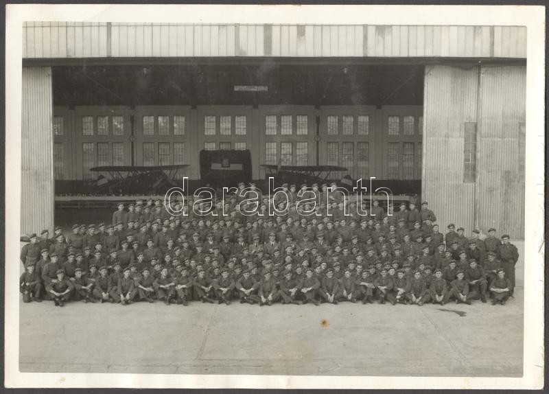 cca 1940 M. kir. légierő repülős század a hangár előtt, 13x18,5cm https://www.darabanth.com/hu/176-Gyorsarveres/176.0/Festmeny-mutargy-papirregiseg-egyeb/Militaria~2000022/cca-1940-M-kir-legiero-repulos-szazad-a-hangar-elott-13x18-5cm~II614549