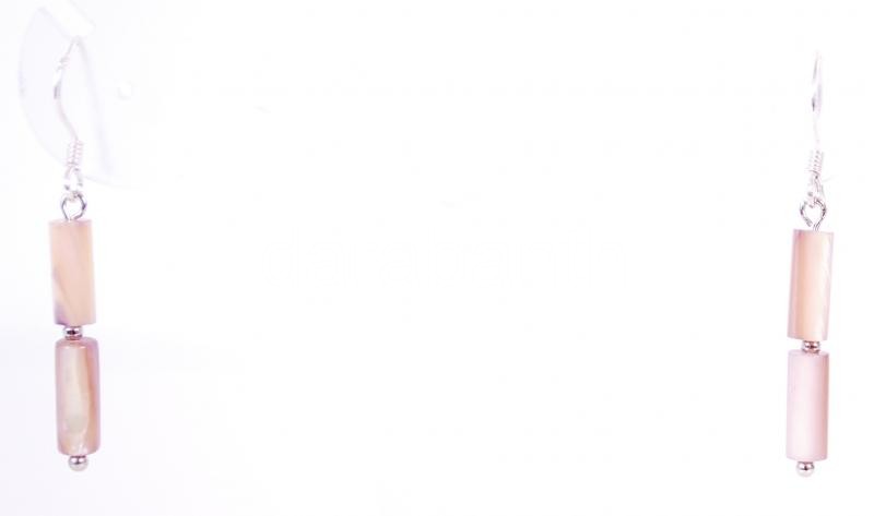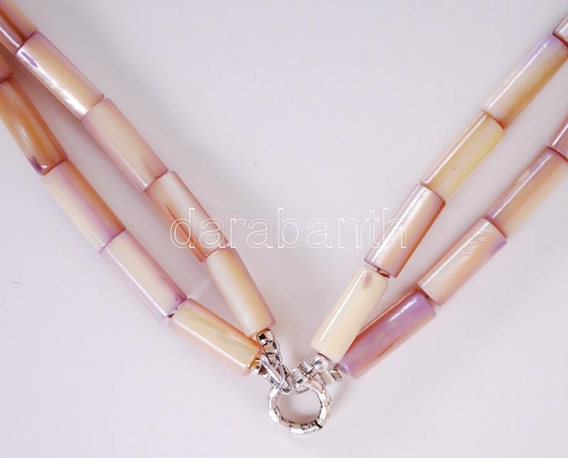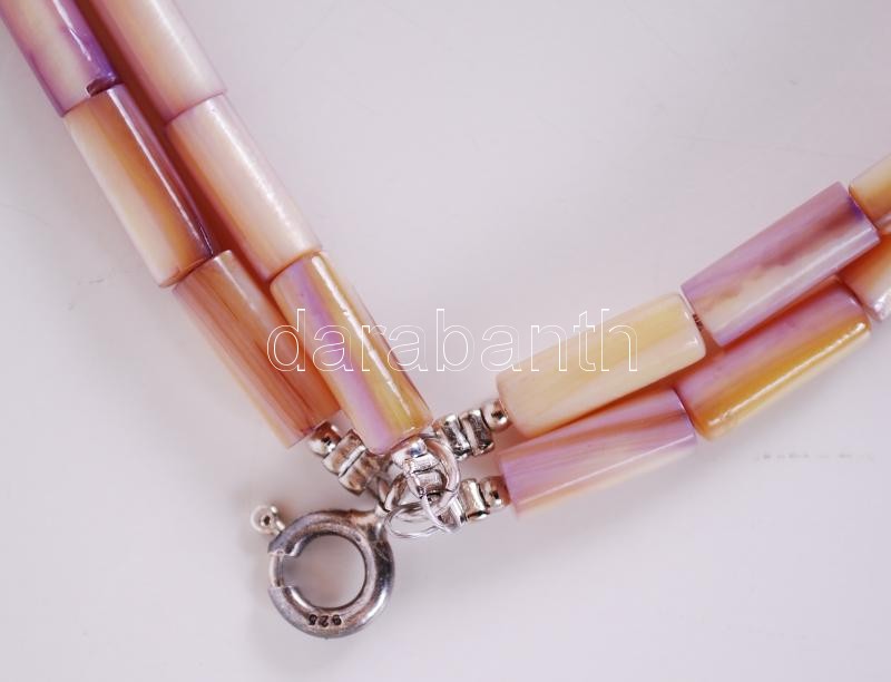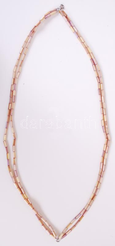 Régi, négysoros gyöngyház nyaklánc ezüst szerelékkel, hozzá tartozó fülbevaló párral /