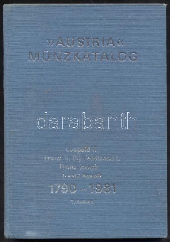 Austria Münzkatalog 1790-1981. 7. kiadás https://www.darabanth.com/hu/177-Gyorsarveres/177.0/Numizmatika/Numizmatikai-irodalom~3300022/Austria-Munzkatalog-1790-1981-7-kiadas~II622858