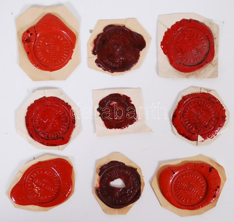 9 db viaszpecsét lenyomat https://www.darabanth.com/hu/178-Gyorsarveres/178.0/Festmeny-mutargy-papirregiseg-egyeb/Bolhapiac~600022/9-db-viaszpecset-lenyomat~II629563