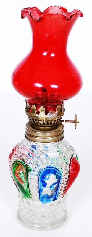 Leírás: Színes, üveg petróleumlámpa /
