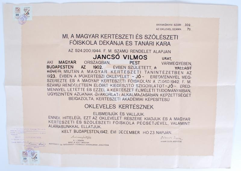 https://www.darabanth.com/hu/178-Gyorsarveres/178.0/Festmeny-mutargy-papirregiseg-egyeb/Okmanyok~600157/1942-Kerteszeti-oklevel~II624689