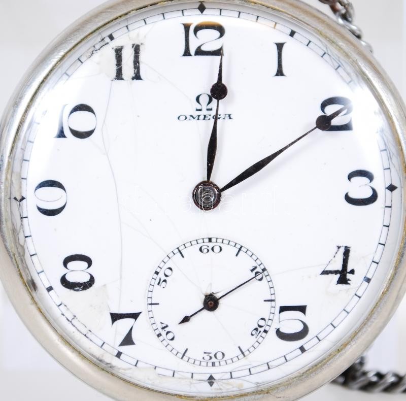 Omega zsebóra lánccal, másodperc mutatós, működik, számlap hibás https://www.darabanth.com/hu/178-Gyorsarveres/178.0/Festmeny-mutargy-papirregiseg-egyeb/Orak~600018/Omega-zsebora-lanccal-masodperc-mutatos-mukodik-szamlap-hibas~II624467
