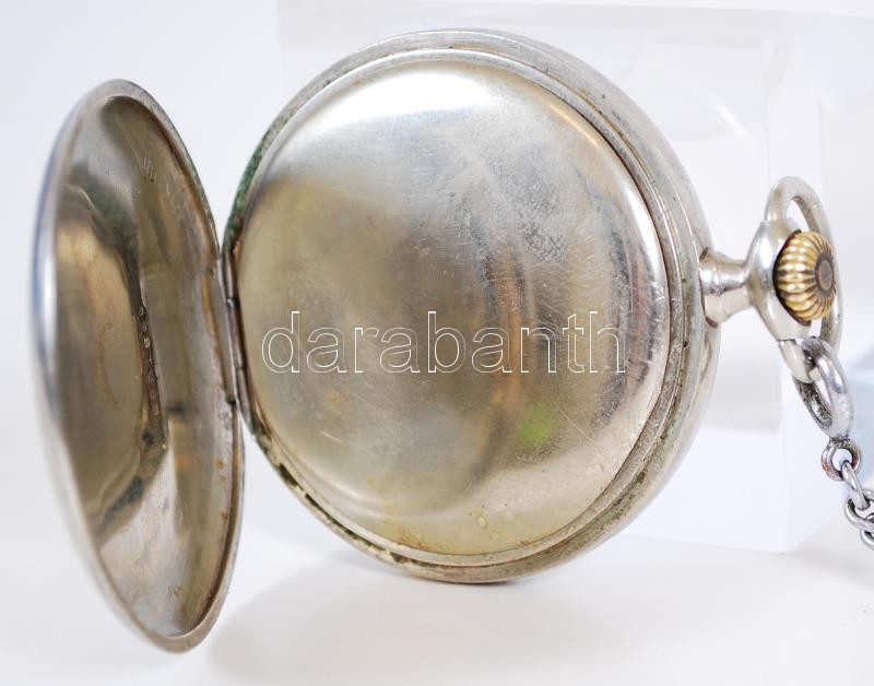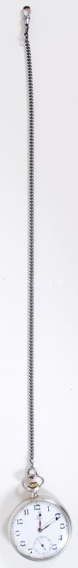 Leírás: Omega zsebóra lánccal, másodperc mutatós, működik, számlap hibás
