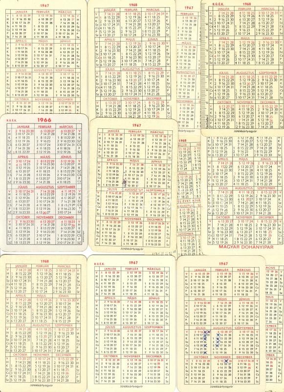 Leírás: Kártyanaptár 1966-1968, összesen:12 db