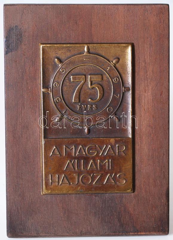 Leírás: Magyar Állami Hajózás 1895-1970 bronz plakett, fa talpon, 8×5 cm