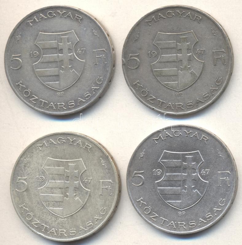1947. 5Ft Ag "Kossuth" (4x) T:3 https://www.darabanth.com/hu/178-Gyorsarveres/178.0/Numizmatika/Magyar-fem-es-ezustpenzek~600145/1947-5Ft-Ag-Kossuth-4x-T3~II625161
