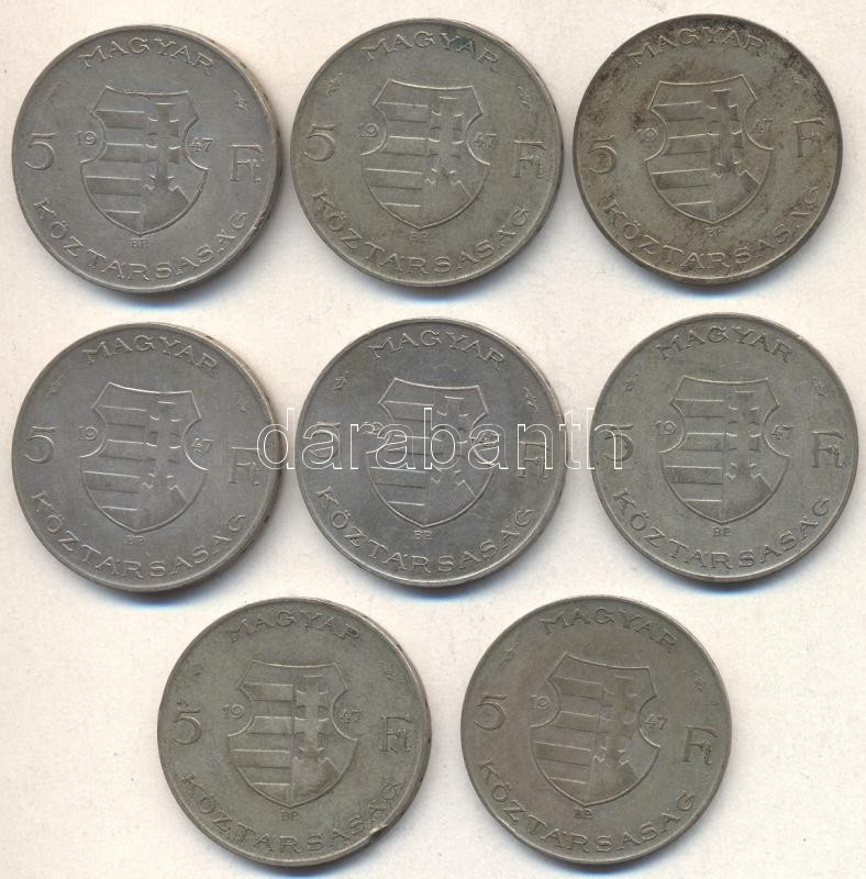 1947. 5Ft Ag "Kossuth" (8x) T:3 https://www.darabanth.com/hu/178-Gyorsarveres/178.0/Numizmatika/Magyar-fem-es-ezustpenzek~600145/1947-5Ft-Ag-Kossuth-8x-T3~II624562