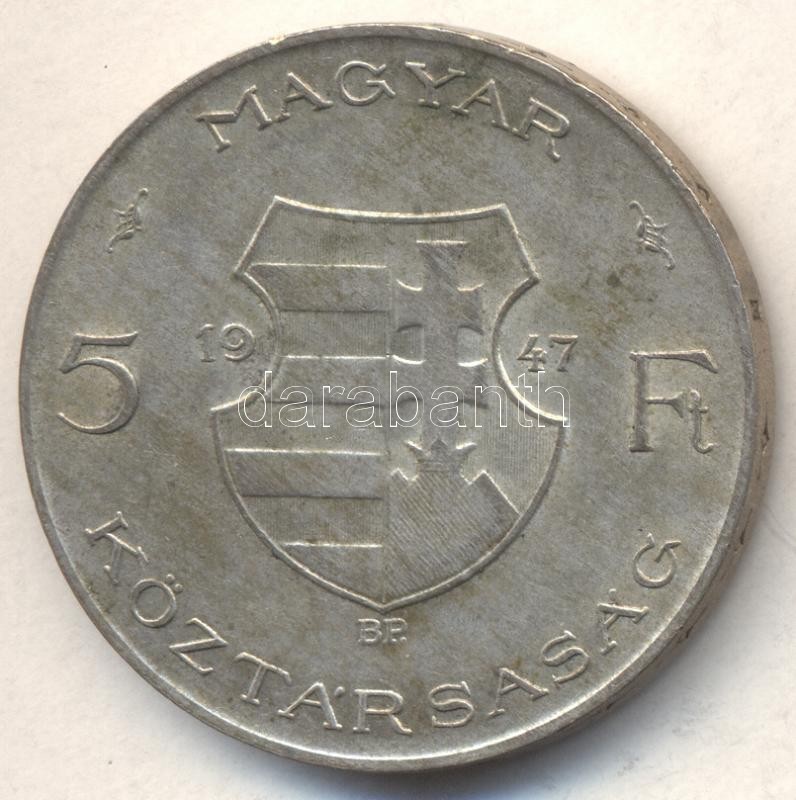 Leírás: 1947. 5Ft Ag "Kossuth" T:2-
