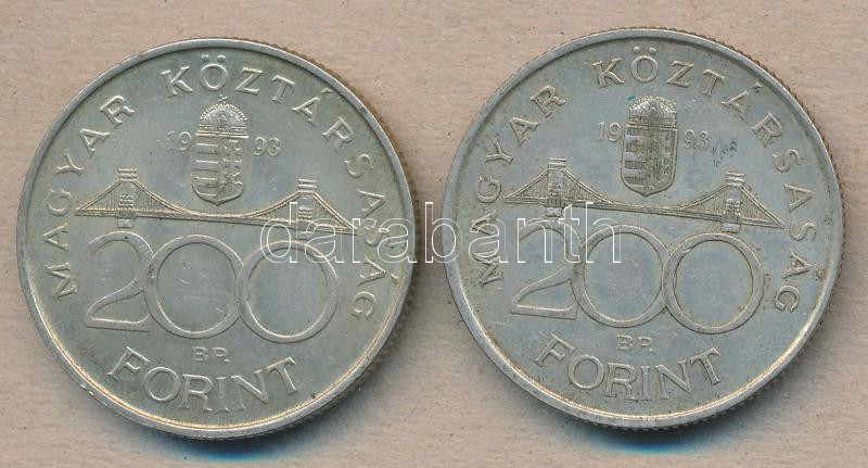 Leírás: 1993. 200Ft Ag "MNB" (2x) T:2,2-