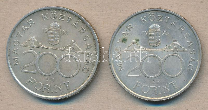 Leírás: 1993. 200Ft Ag "MNB" (2x) T:2,2-